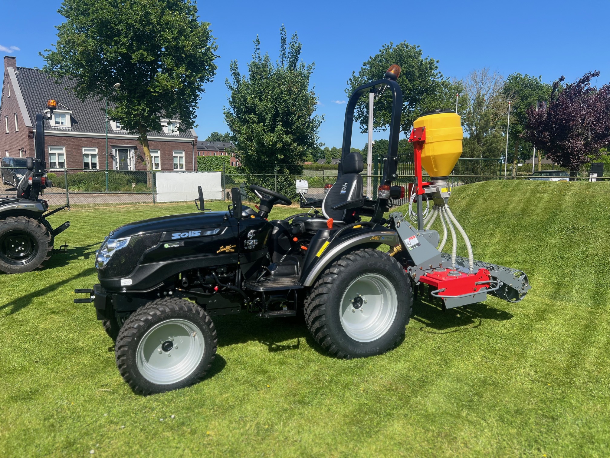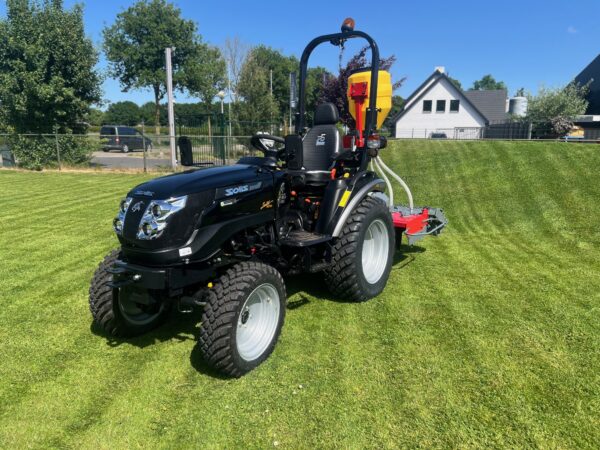 Deze compacttractor is met zijn betrouwbare 26 pk stage V Mitsubishi motor zeer krachtig en conform de strenge Europese emissie-eisen. De Solis H26 is standaard voorzien van stuurbekrachtiging. De Solis H26 is daarnaast ook uitgerust met 4wd, 1 dw ventiel achter, 2 dw ventielen in het midden, trekhaak, gatenbalk en valbeugel met zwaailamp. De sterke driepuntshef heft 621 kg en is eenvoudig te bedienen. Tevens voorzien van een aftakas achter met 540 tpm en een middenaftakas met 2100 tpm. Deze aftakas is onafhankelijk en blijft dus altijd doordraaien ook wanneer de tractor tot stilstand wordt gebracht. Door zijn robuuste bouw en zware vooras is de tractor zeer geschikt in combinatie met een voorlader. Leverbaar met landbouw banden en optioneel andere banden. De Solis H26 is voorzien van een vlakke vloer waardoor meer beenruimte en comfort wordt gecreëerd.