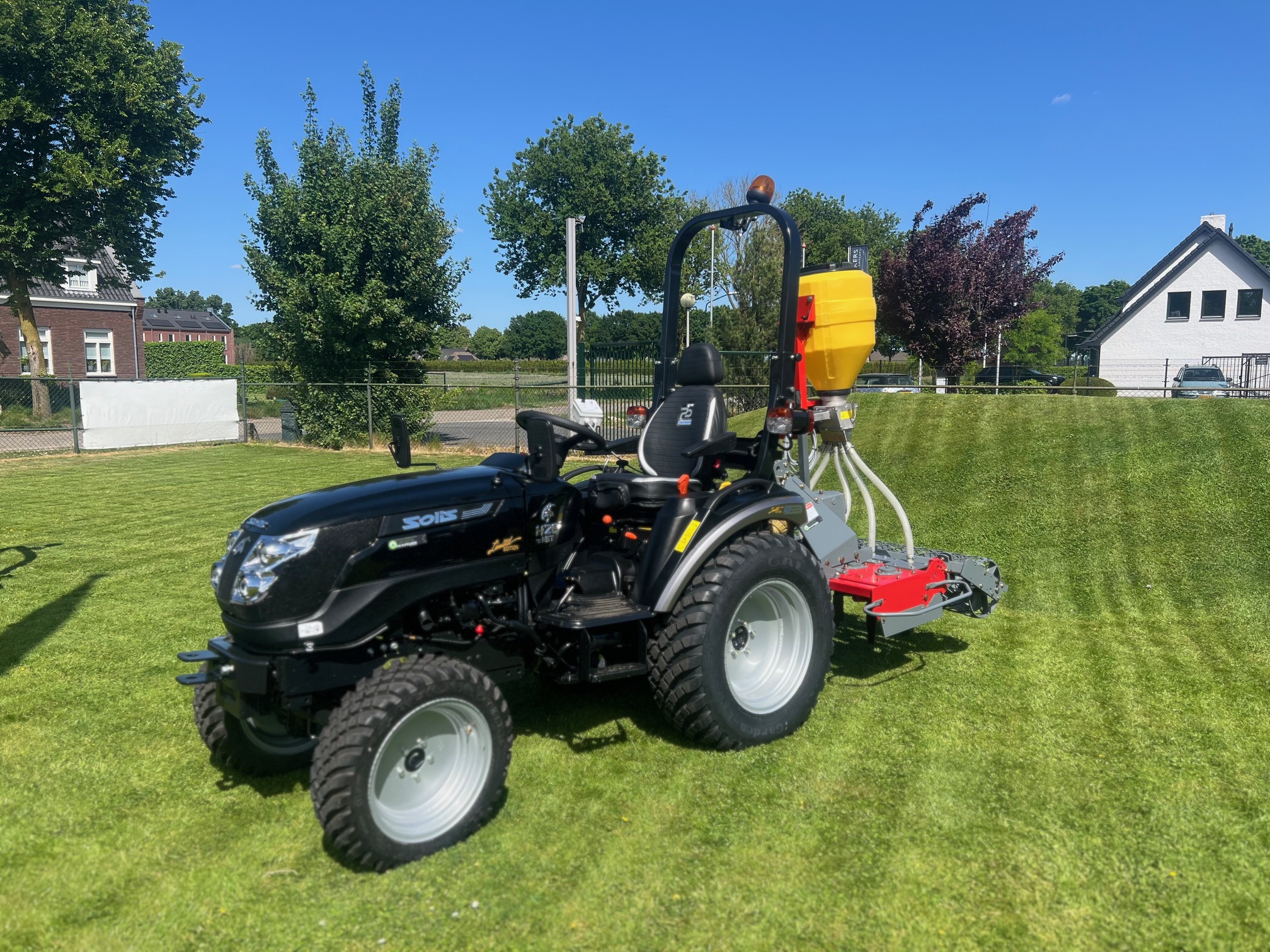 - Middenmaaidek 150 cm incl. ophanging ( iedere HST heeft een standaard middenaftakas). Alleen te gebruiken i.c.m hoge gazonbanden. Maximale bodemvrijheid maaidek bij hoge gazonbanden: 100mm.